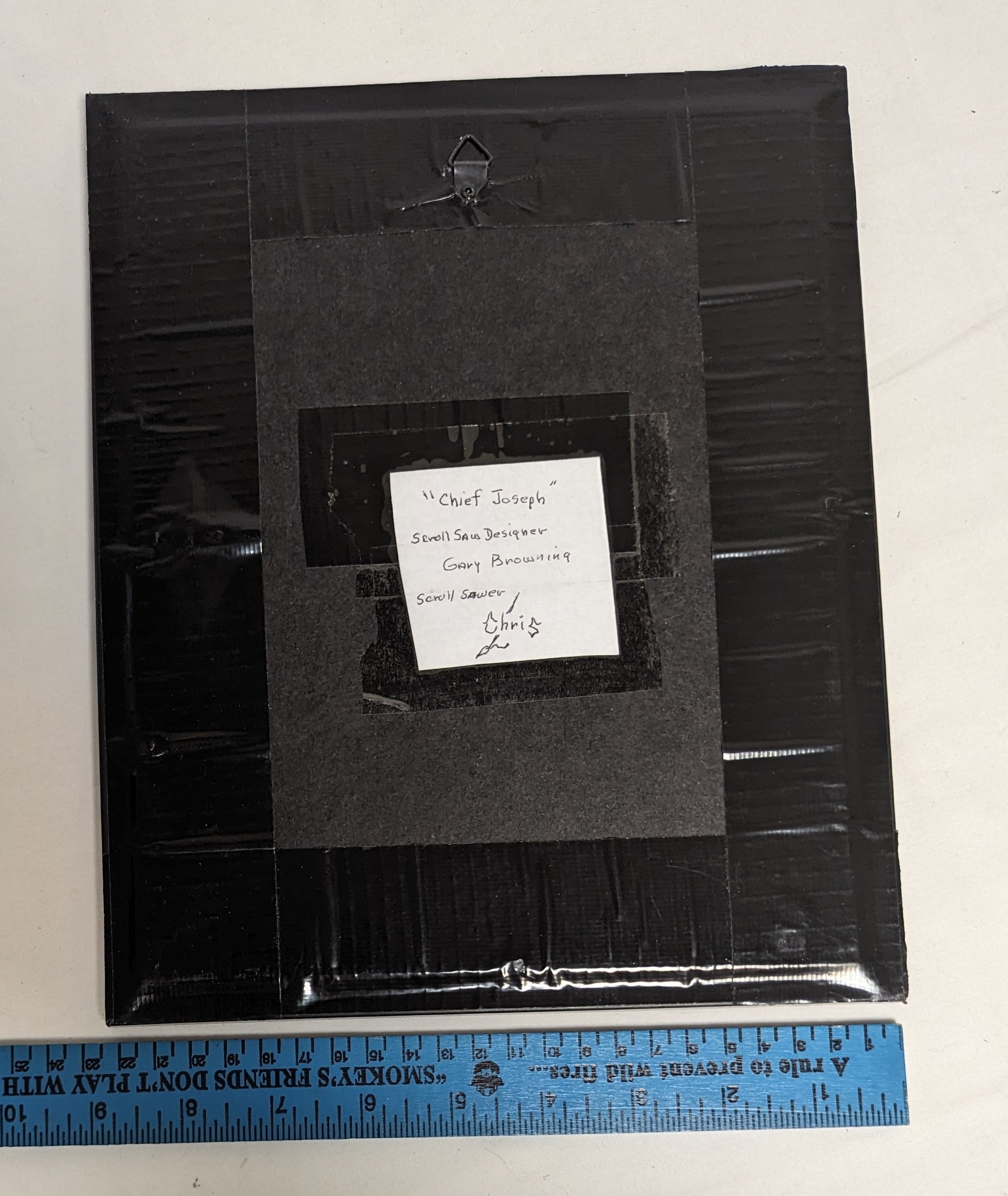 Art Hand Scroll Sawn Cut Out " Cheif Joseph" Portait in frame under glass Credited and Autographed