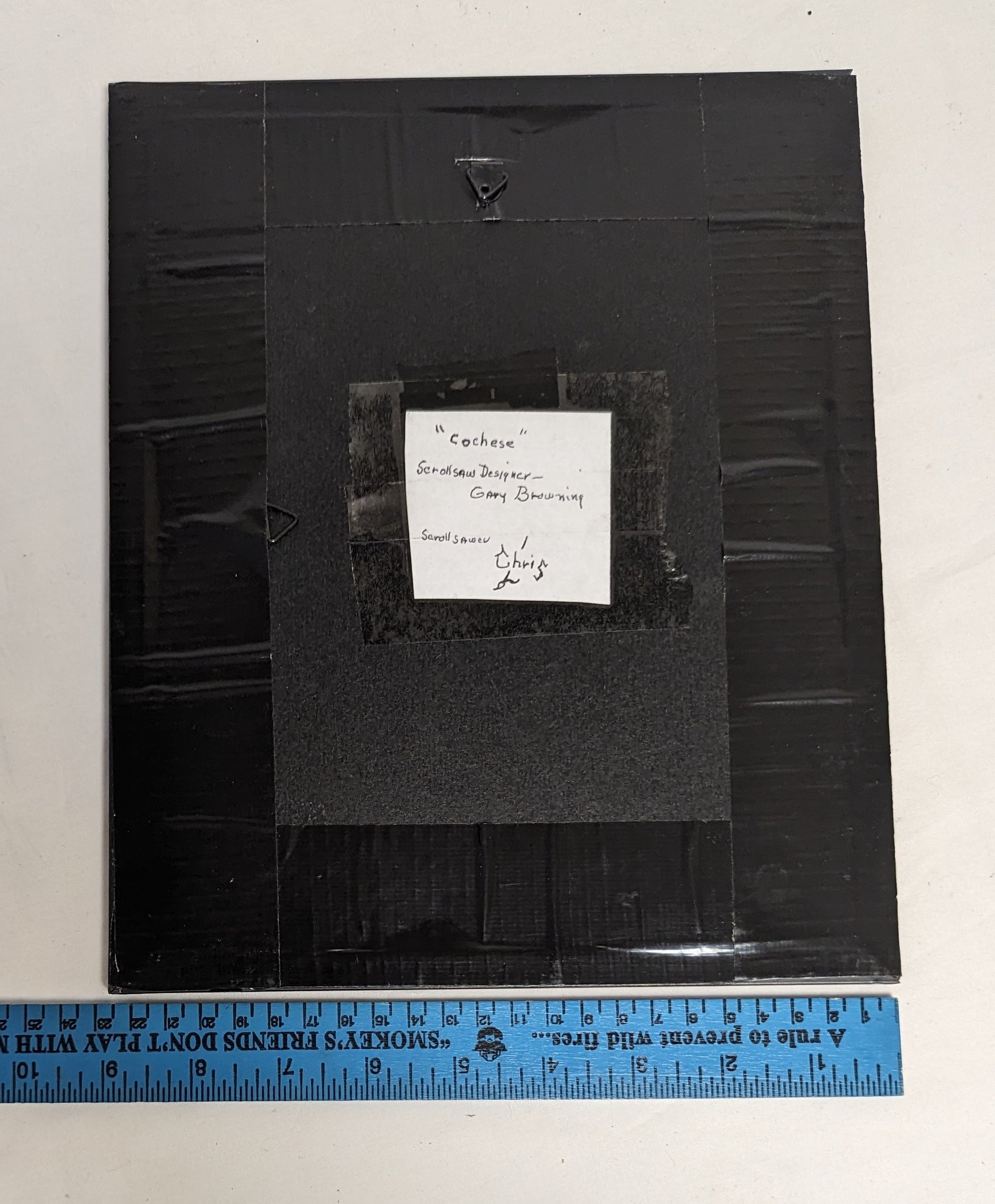 Art Hand Scroll Sawn Cut Out " Cochese" Portait in frame under glass Credited and Autographed