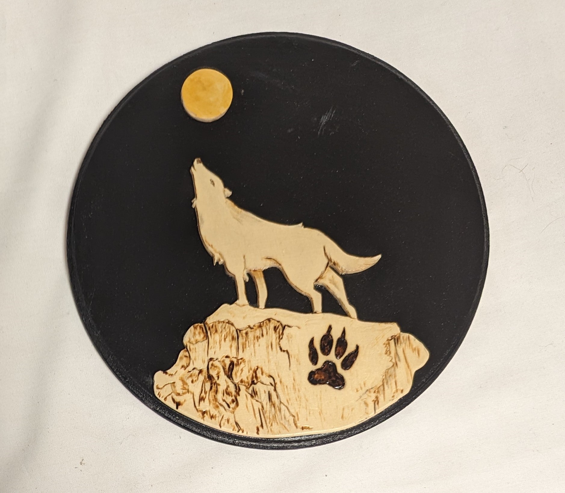 Art Handmade Pyrography ScrollSaw cutout Layered " Wolf Howling at the moon"