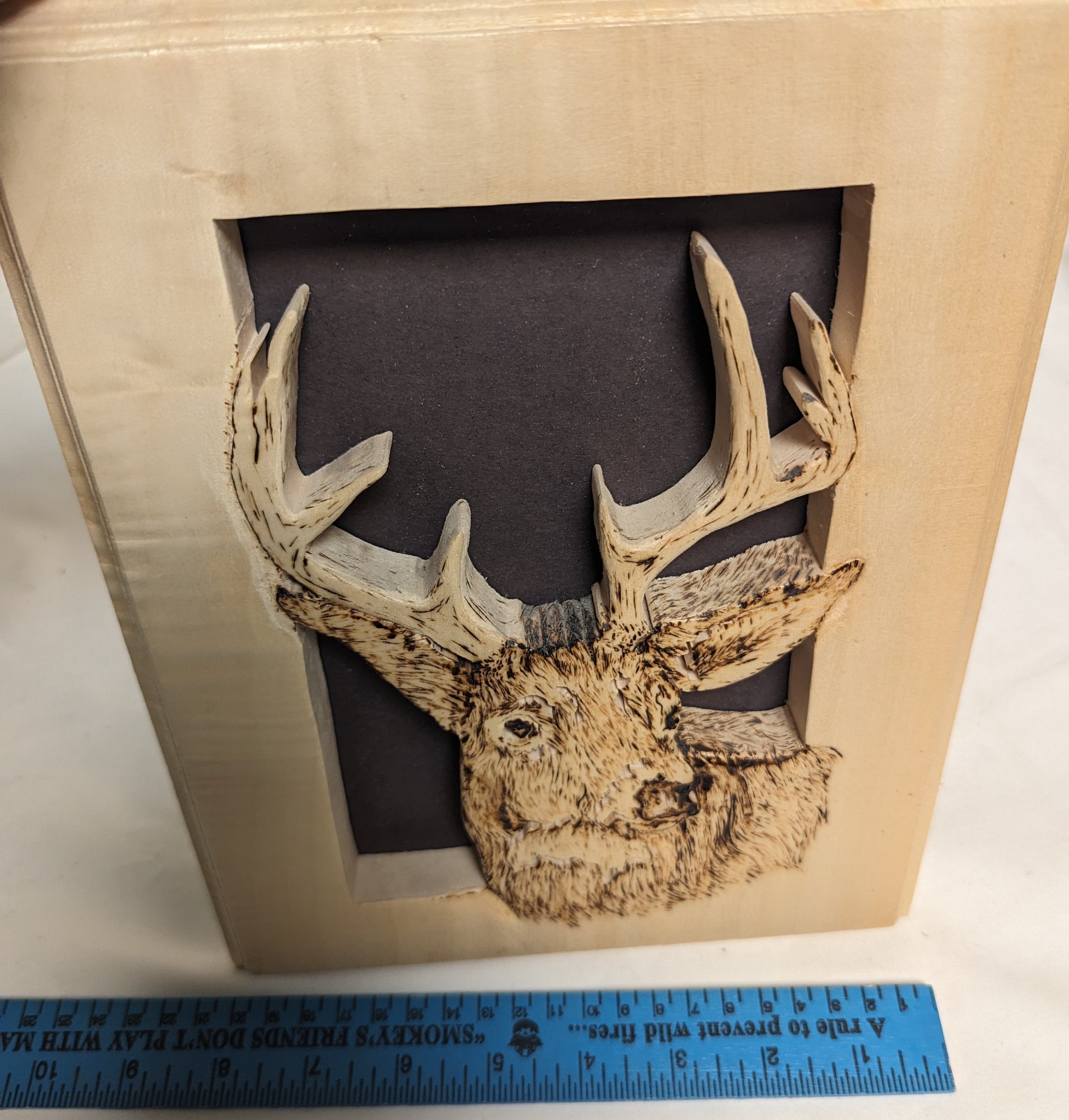 Art Handmade scroll sawn Pyrography on thick wood "Buckhead in Frame" wall hanging