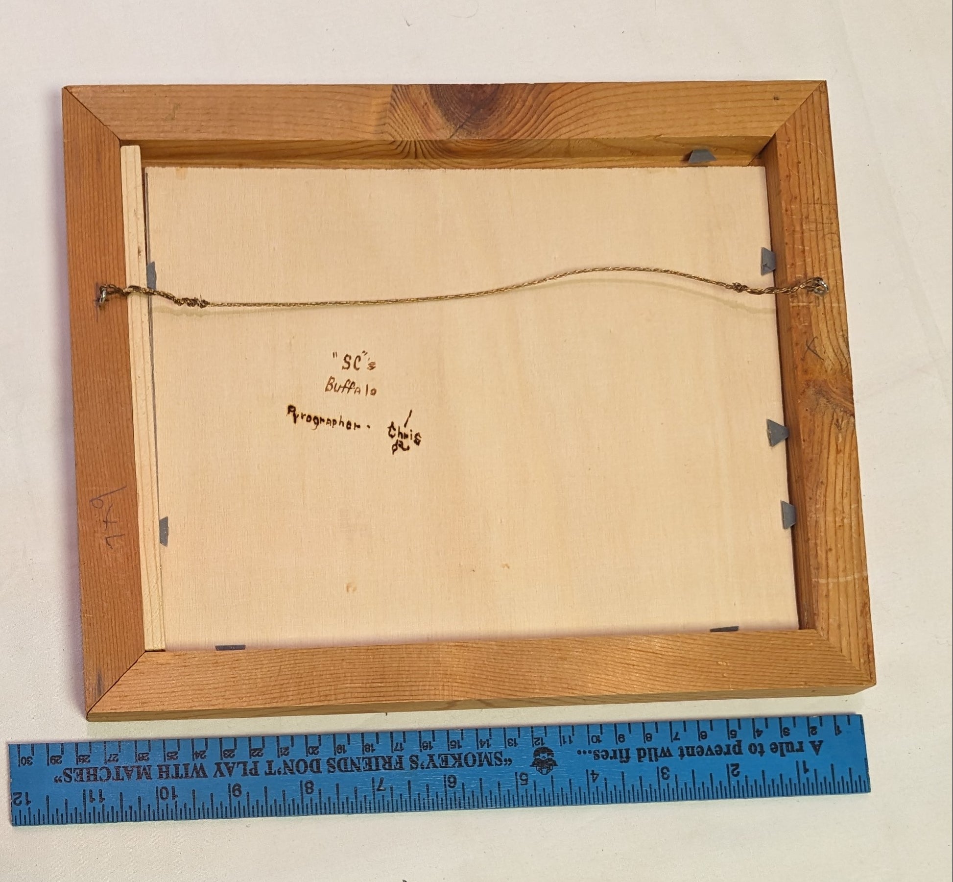 Art Pyrography on Wood Burned by hand Buffalo on Prairie in Frame