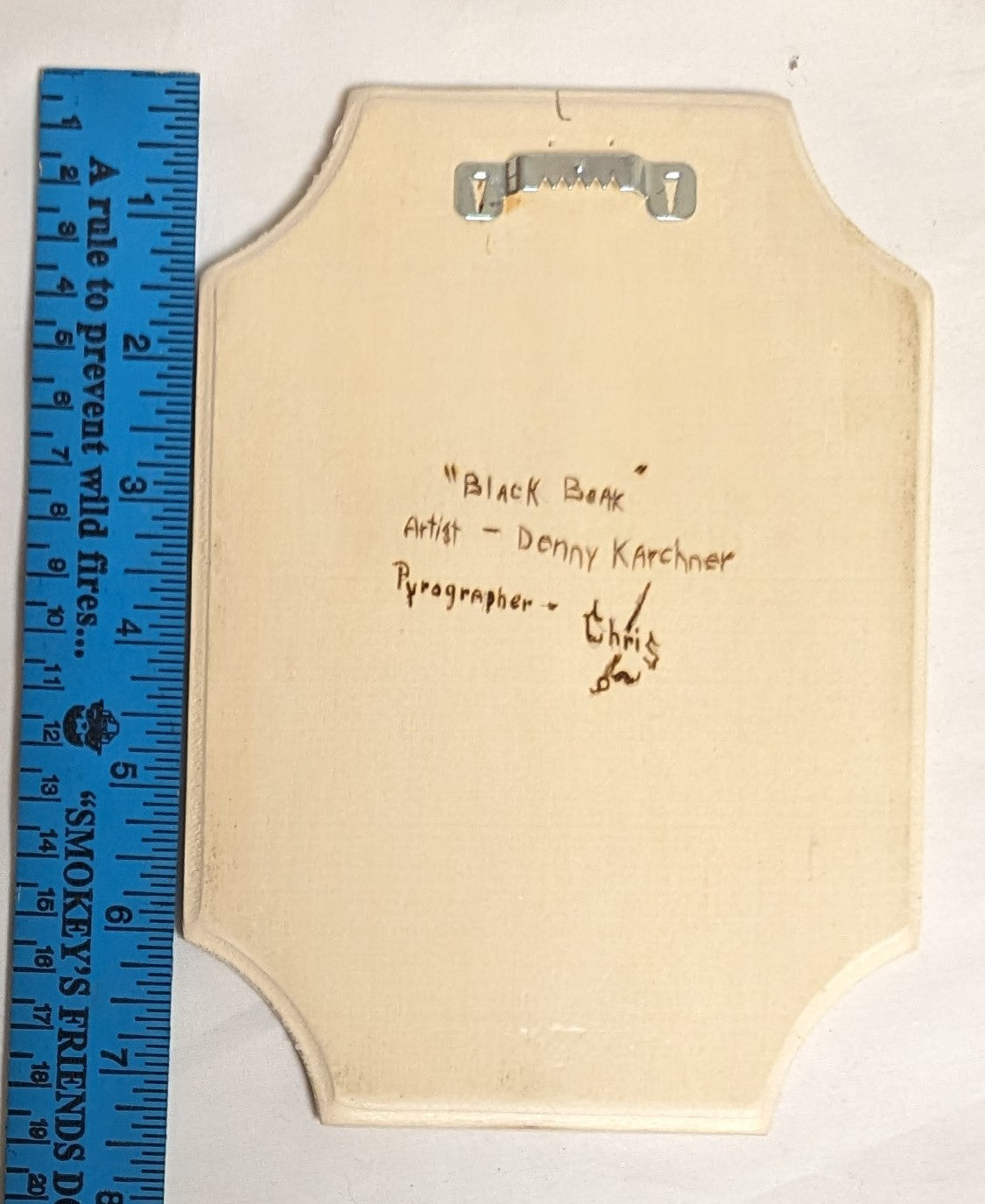 Art Pyrography on wood Native American Portrait "Black Bear" Credited and Autographed