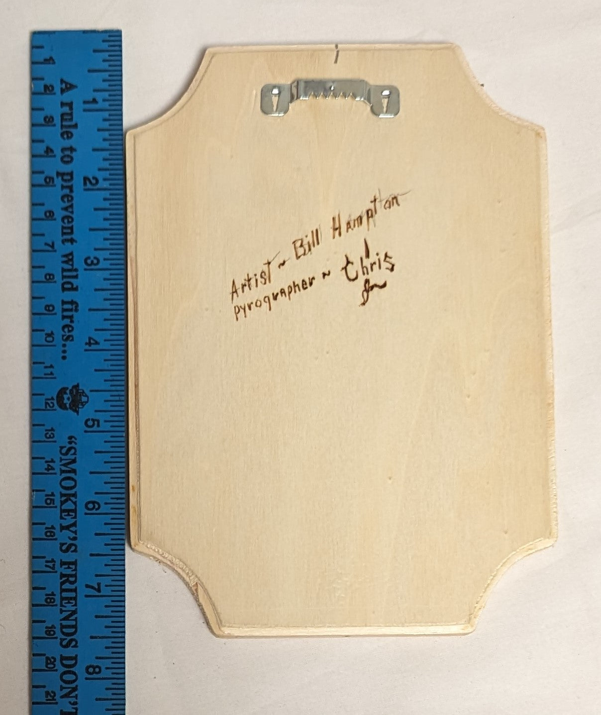 Art Pyrography on wood Native American Portrait Credited and Autographed