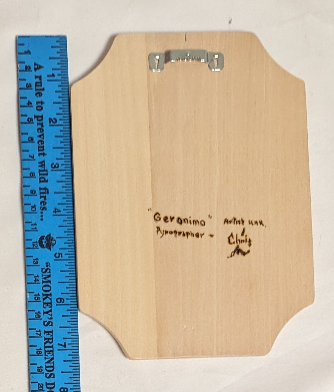 Art Pyrography on wood Native American Portrait "Geronimo" Credited and Autographed