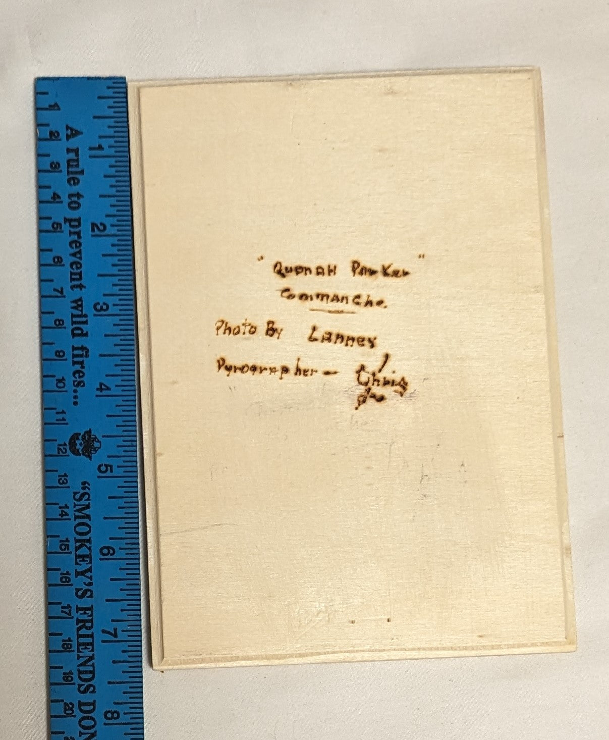 Art Pyrography on wood Native American Portrait "Quanah Parker Comanche " Credited and Autographed