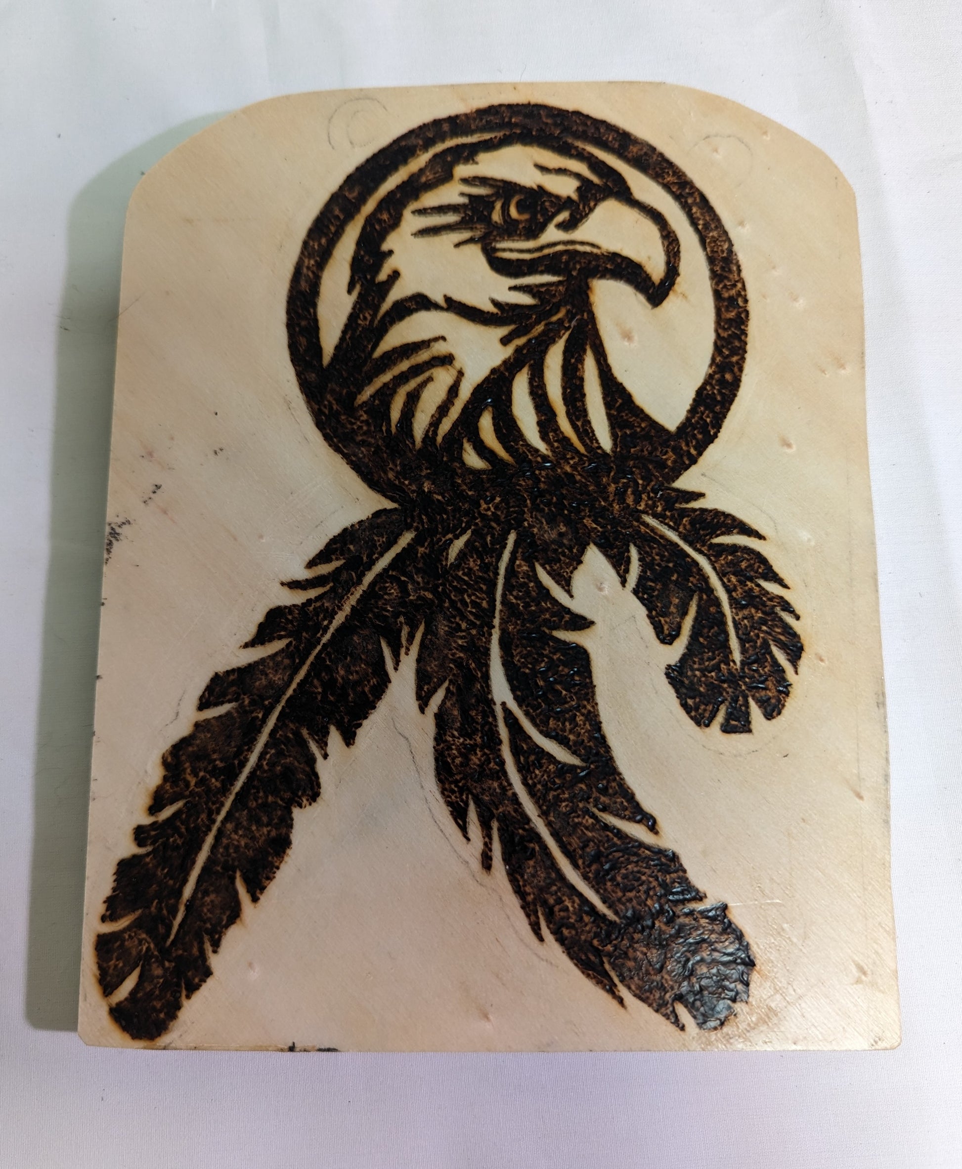 Art Pyrography Original Eagle Head Emblem with Feathers on wood