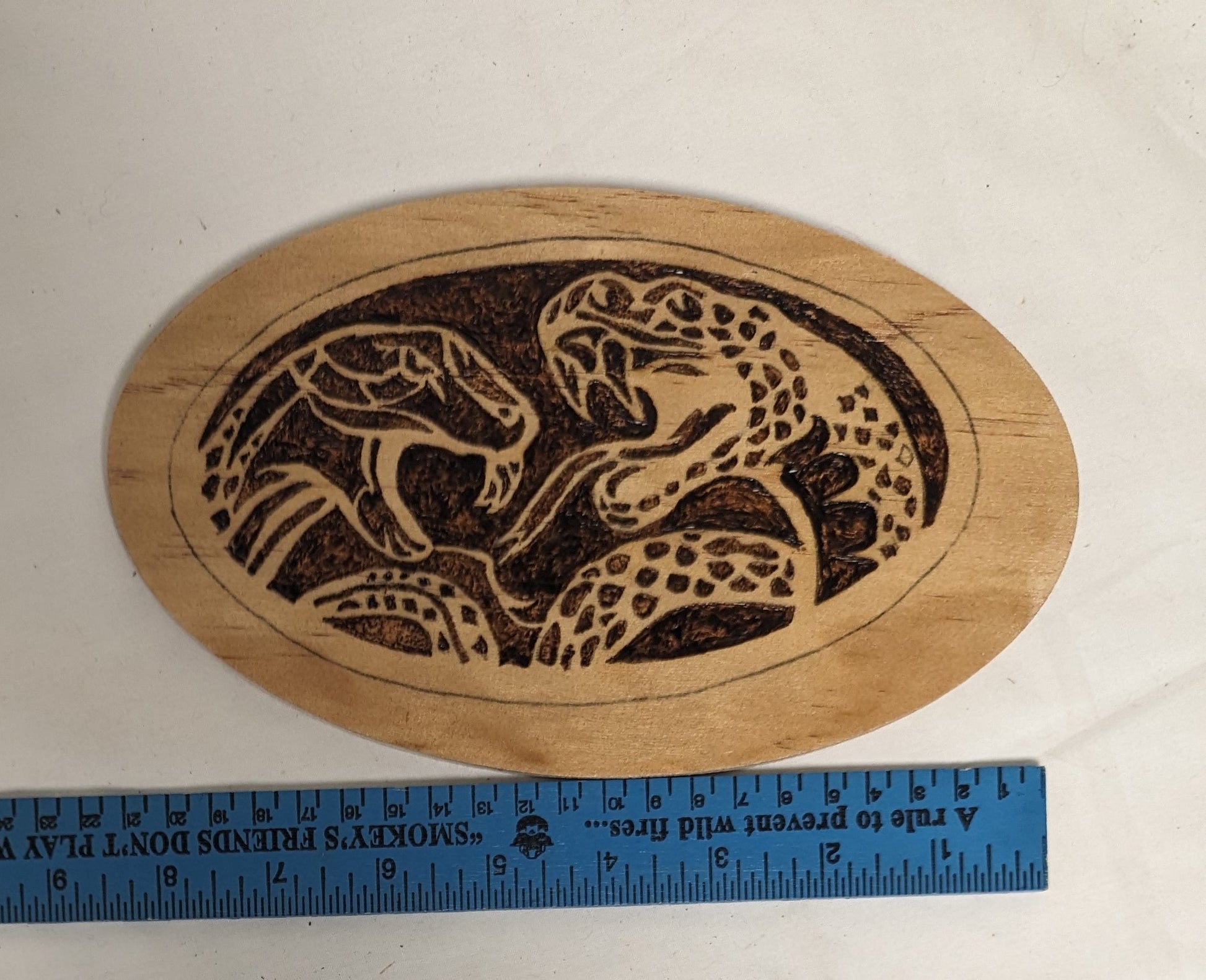 Art Vintage Handmade Pyrography on wood " Snake Heads Emblem"