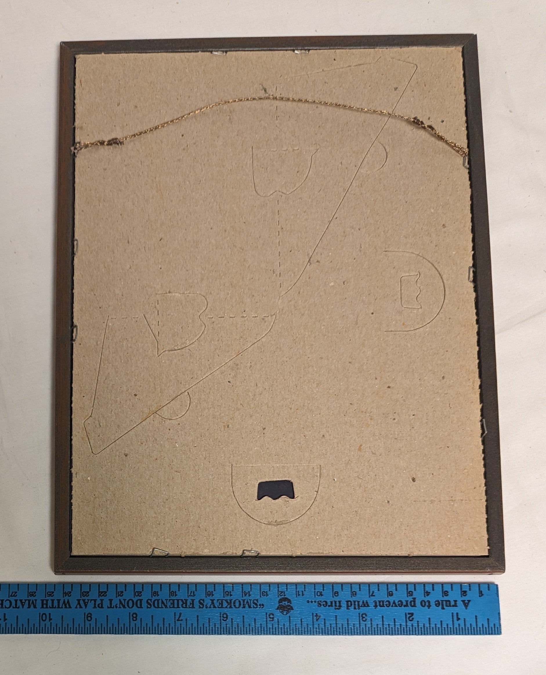 Art Vintage Rare Hand Scroll Sawn Cutout in wood " Wolf head " in frame under glass `