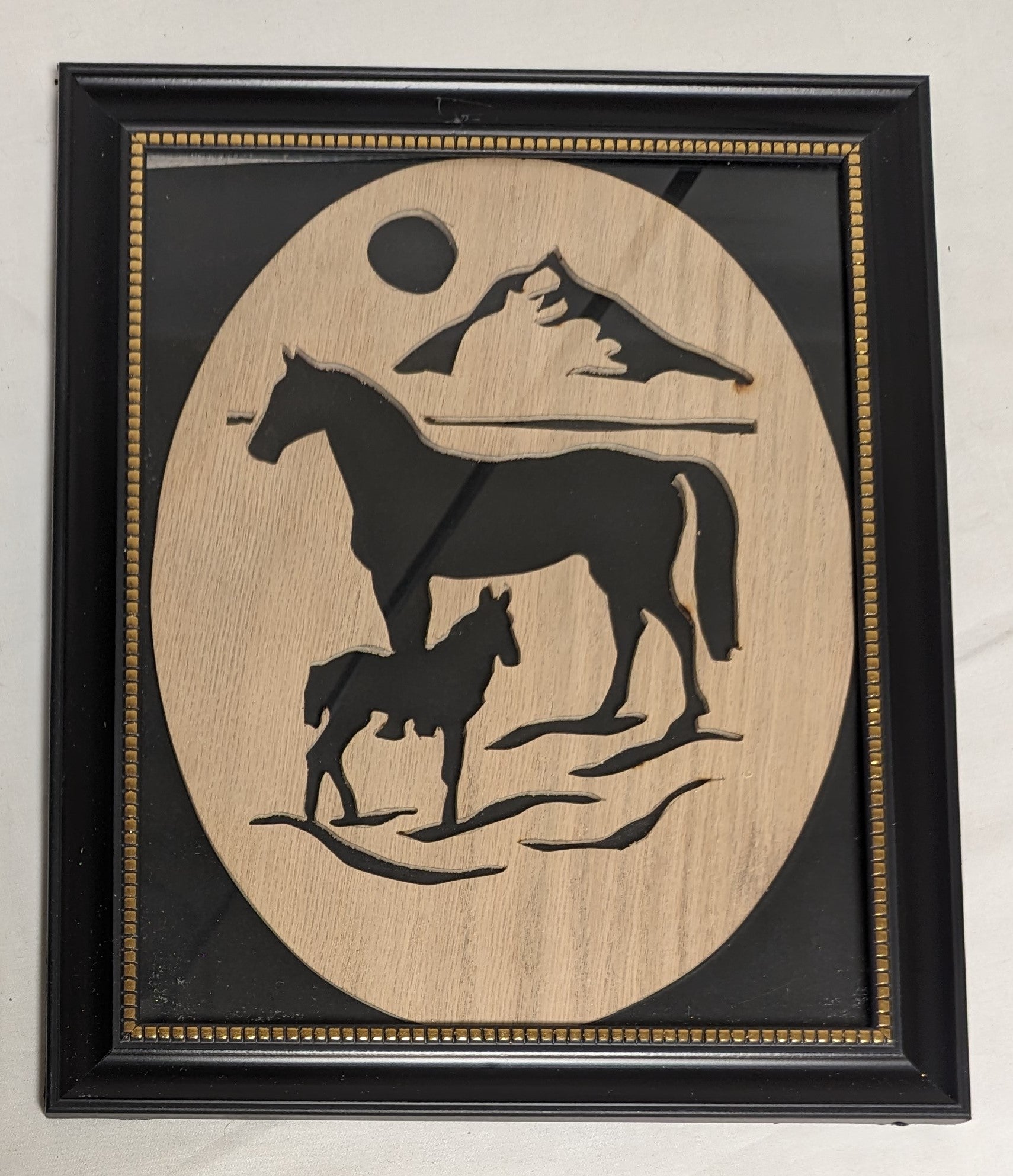 Art Vintage Scroll Saw Cutout "Horse and Colt" " Framed