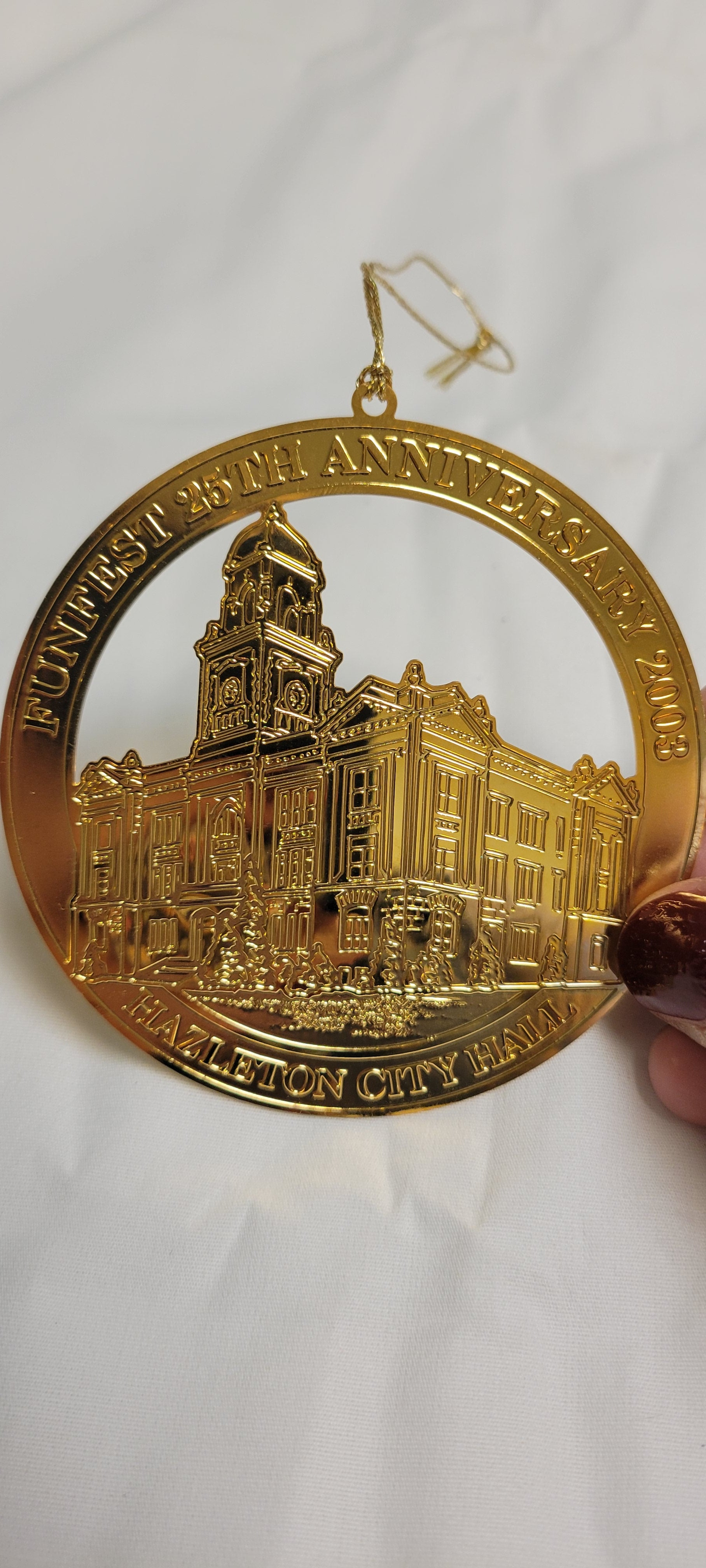 Funfest 25th Anniversary 2003 Hazleton Pennsylvania City Hall cut out Christmas tree ornament.
