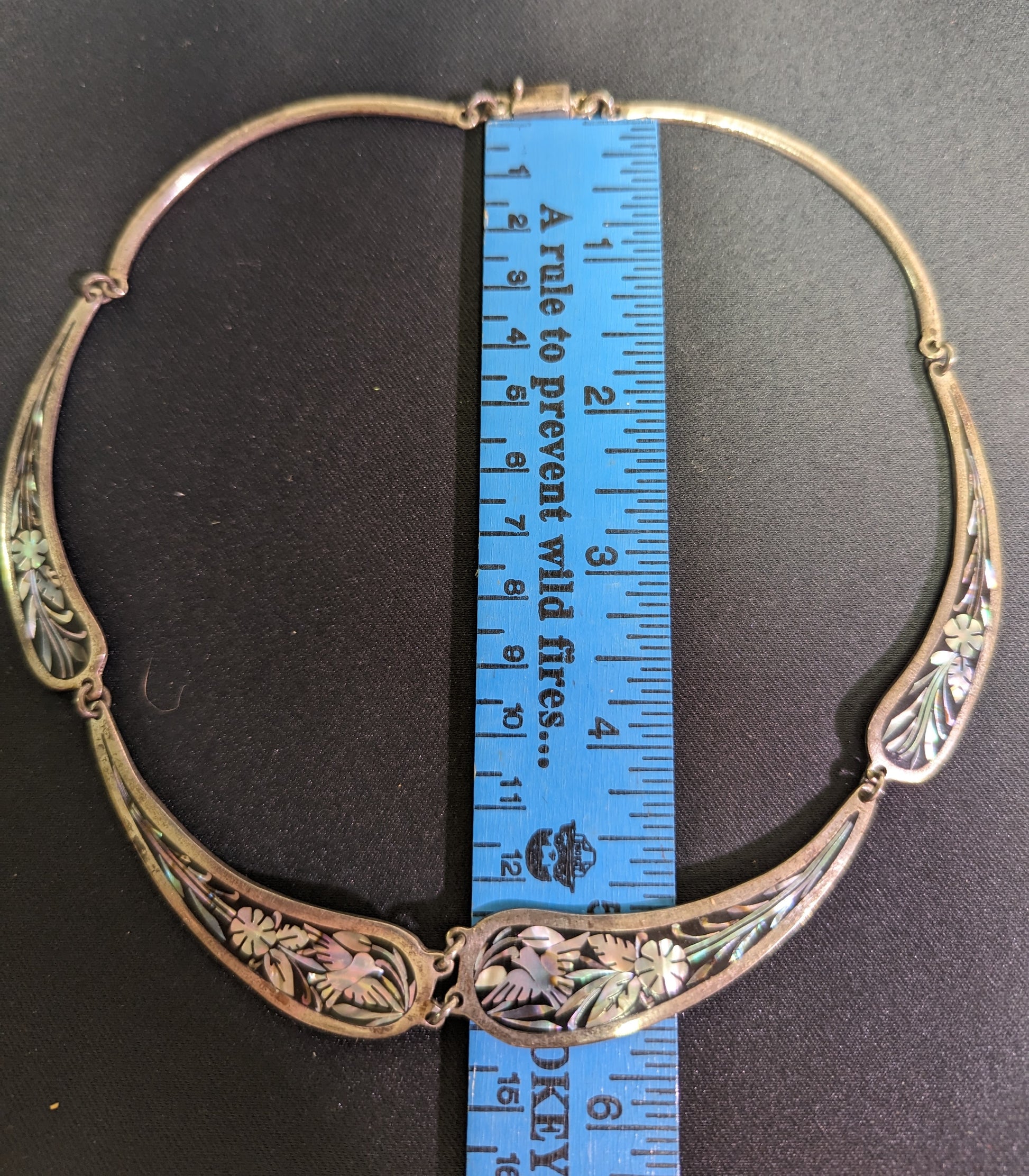Necklace Rare Silver 925 Inlayed Mother Of Pearl Abalone Birds and Flowers