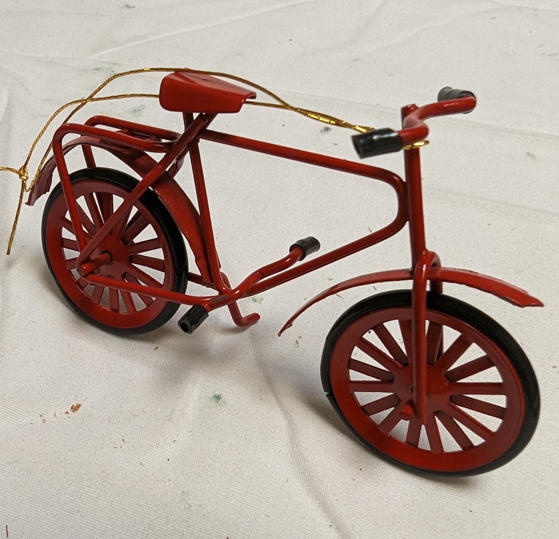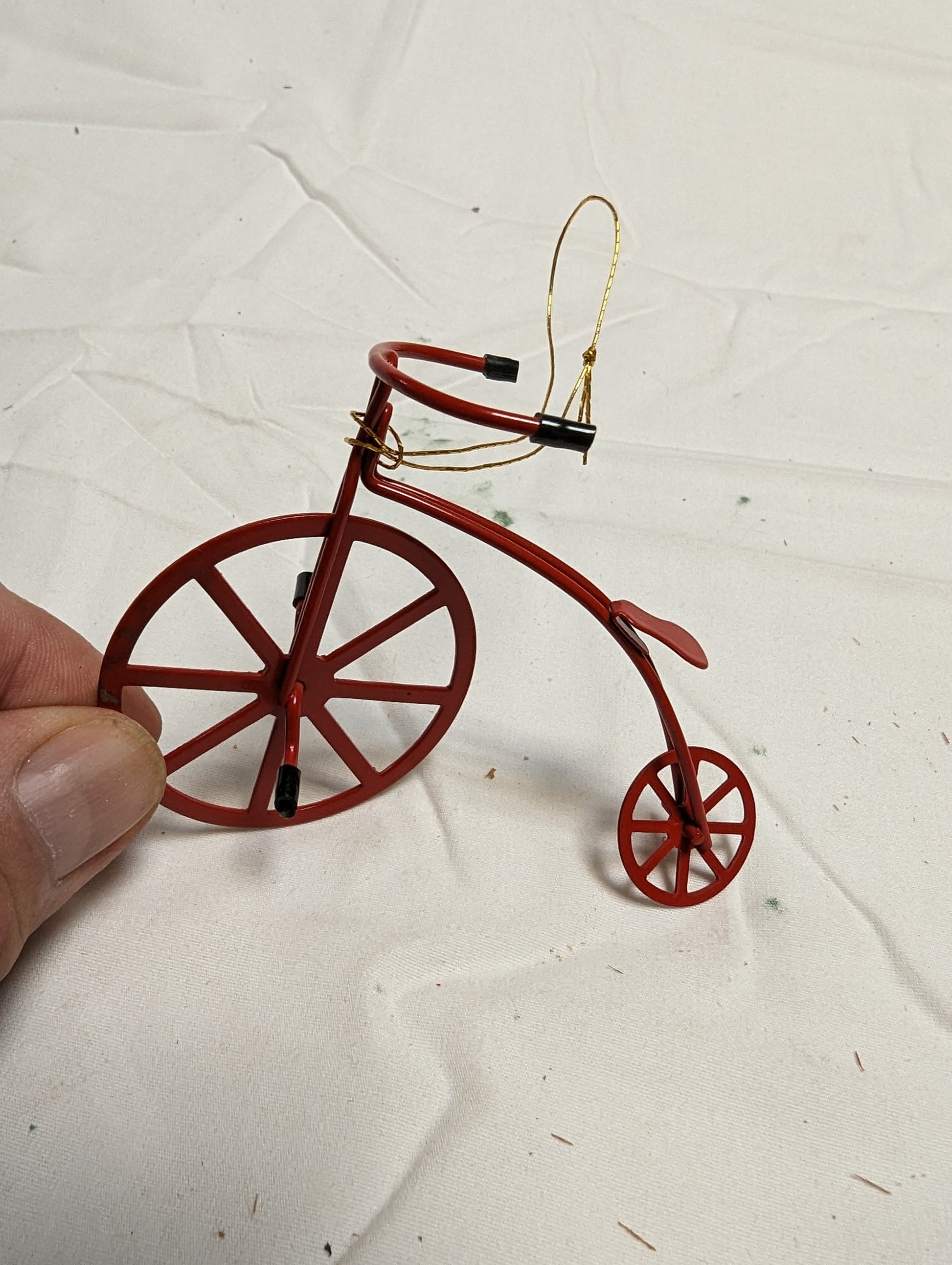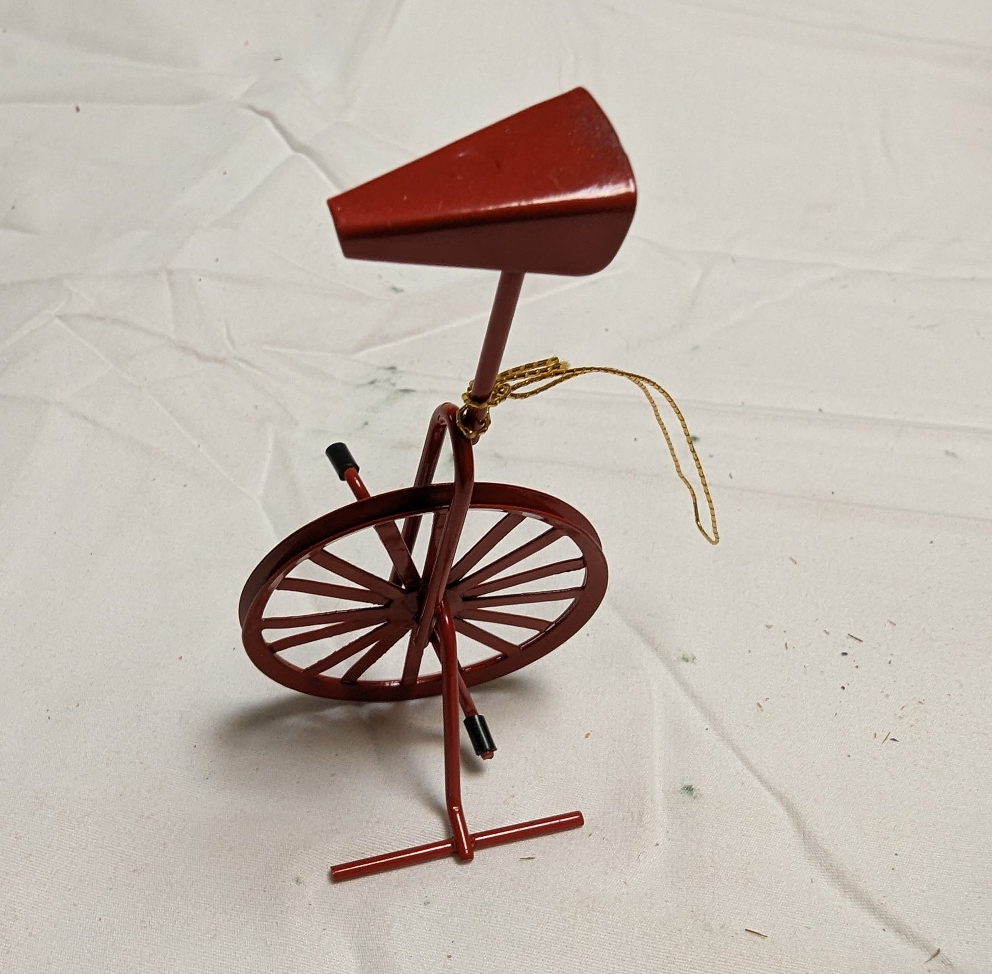 Ornaments Christmas Metal Children Conveyances red with Black Wheels ( Wheels Roll ( Set of 12