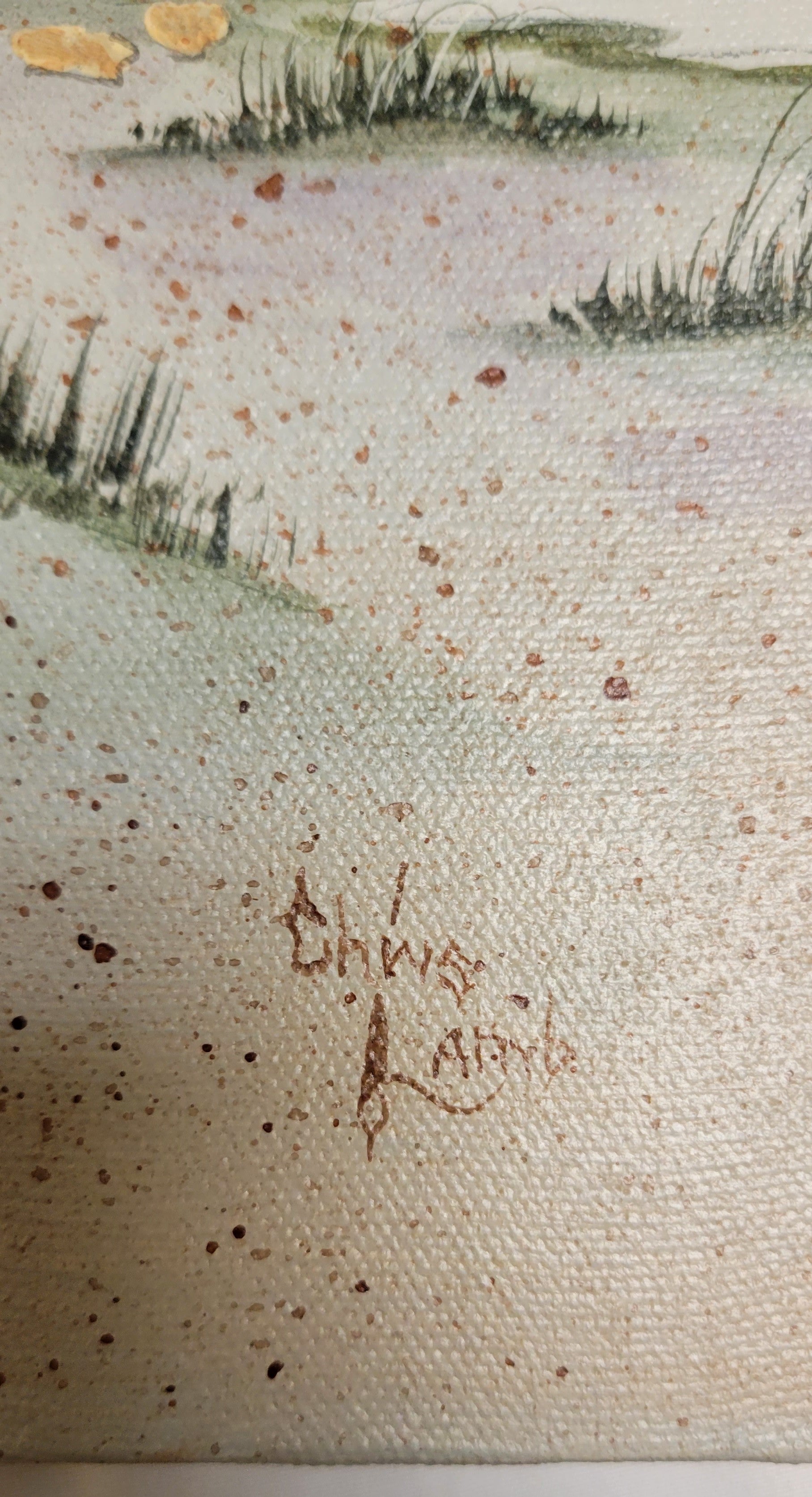Acrylic Painting Beach Shack Scene w laundry on line (Unframed