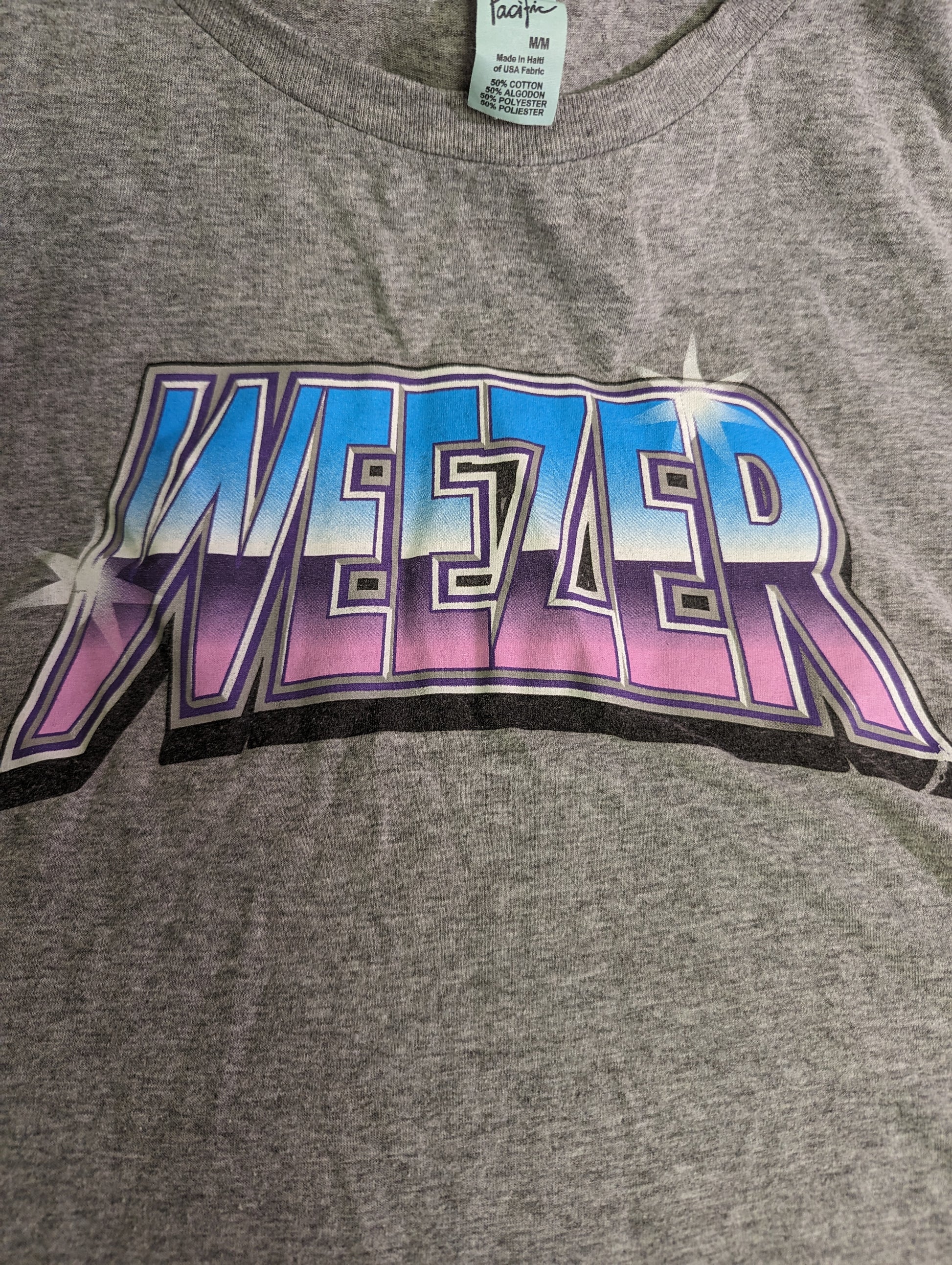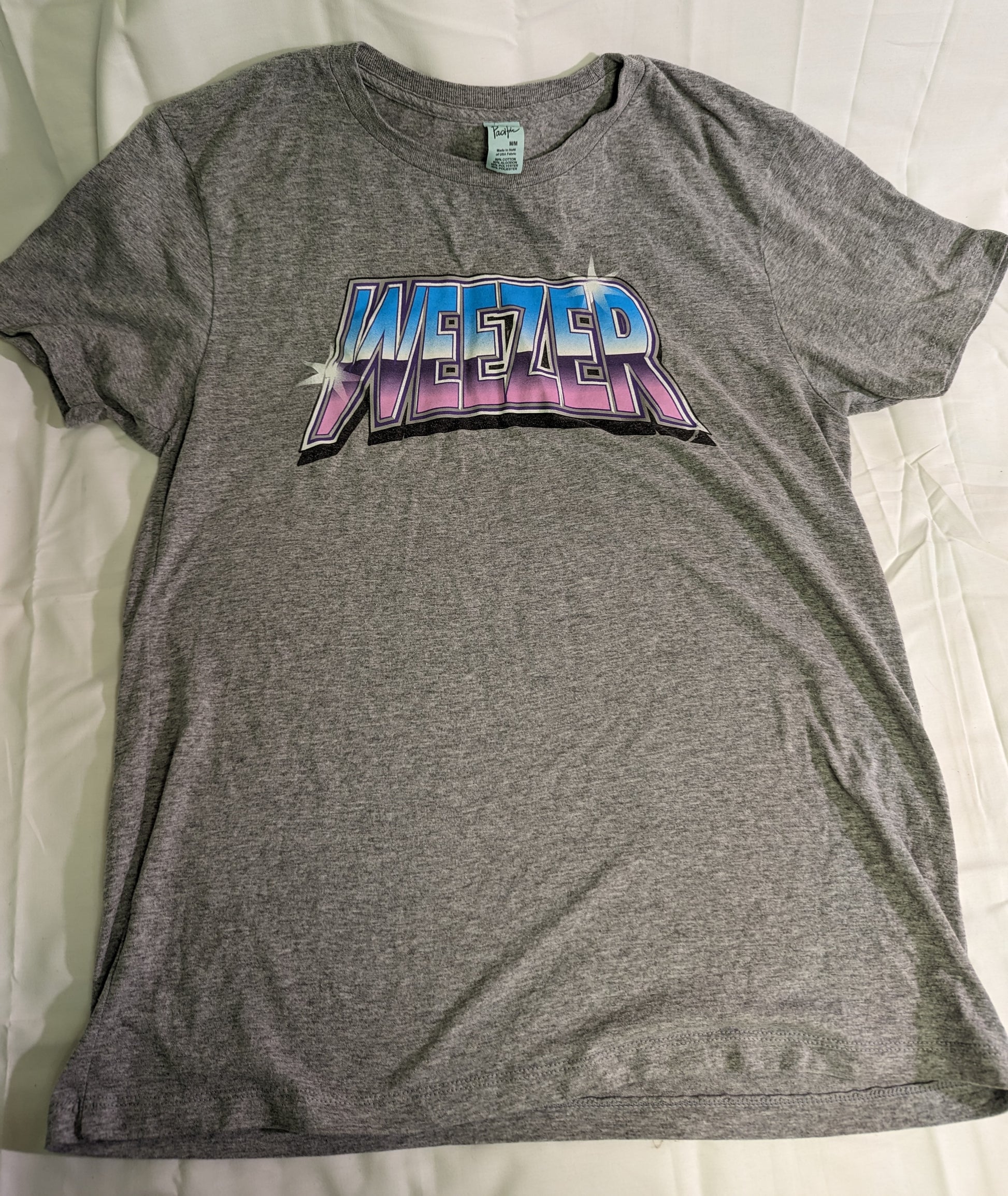 T Shirt Weezer Rock Band Size Medium Blue and Pink Luster