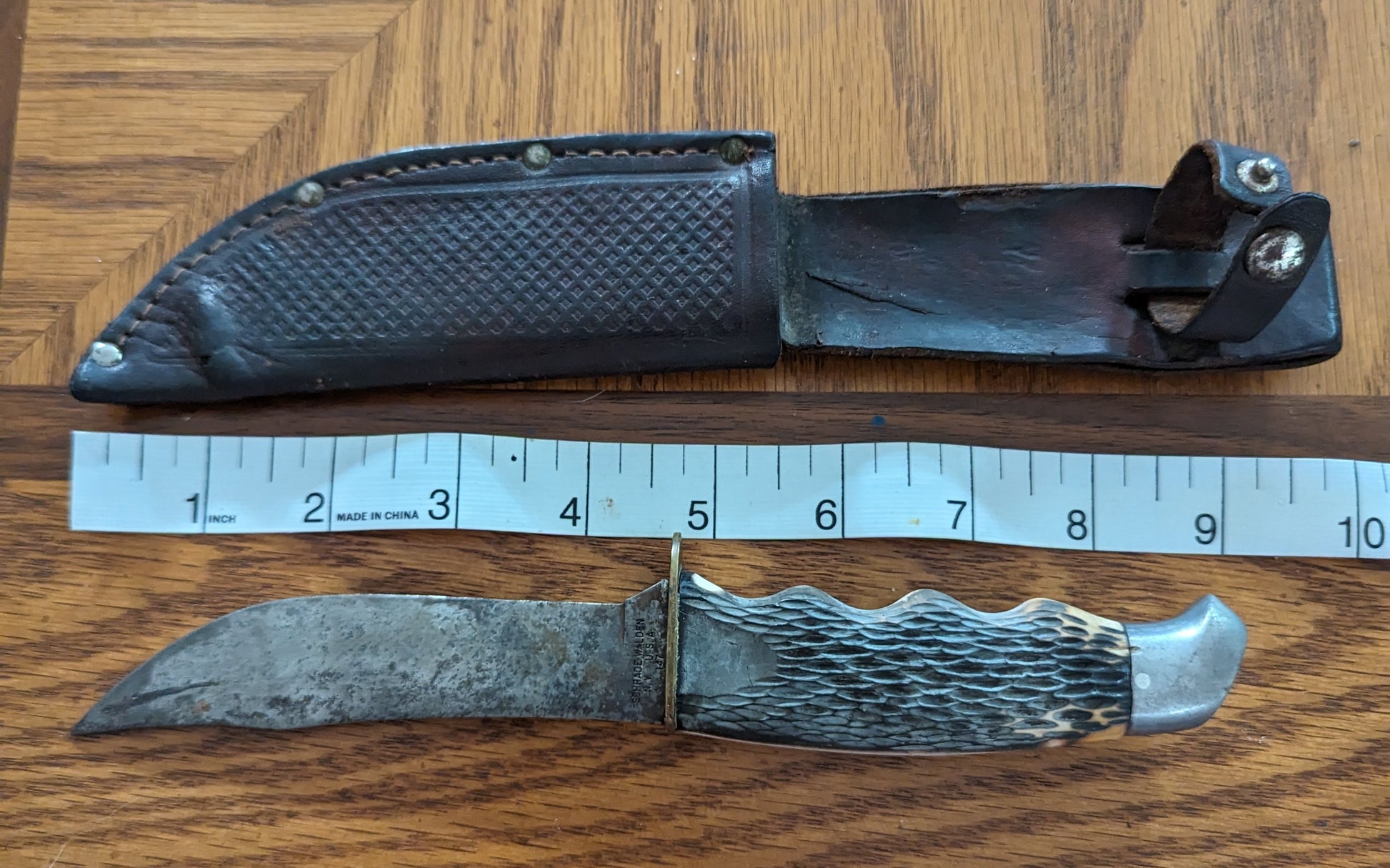 Vintage Schrade & Walden N.Y. USA Model 147 Skinning knife w/ Stagalon handle.